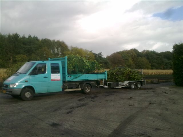 Ook het bos en haagplantsoen kan in deze maanden weer volop geplant worden….. Het ook wel bhpl genoemd, met blote wortels….. Hieronder vallen verschillende bomen en struiken…. Het meeste is bladverliezend en wordt geleverd in bossen van 25 stuks met kale wortel. Wanneer de bladeren van de bomen zijn kunnen deze geplant worden tot dat de bladeren weer aan de bomen komen dus zeker eind Maart begin April…. De gehele winter kun je volop planten mits de grond vorstvrij is om in te werken….. Hagen of singels kun je hier van planten…. Bekende soorten zijn Eik, Beuk, Wilg, Berk, Rozen, Vlier, Appelbes, Krentenboom, Liguster, Kers, Lijsterbes, Esdoorn en Hulst. Heel mooi is het om alles door elkaar te planten in een singel zodat het hele jaar de het aantrekkelijk is voor mens en dier…. Vogels voelen zich in een goed aangeplante singel enorm thuis en kunnen hier het gehele jaar leven van verschillende soorten voedsel…. Ook kun je doormiddel van juist aangebrachte beplanting het zicht wegnemen van bepaalde zaken die je liever niet wilt zien….. bijvoorbeeld een lelijke overkapping van de buren….. of een hoek waar altijd flink wind vandaan komt….. In zo’n brede strook beplanting van verschillende soorten bomen en heesters ontstaat het recht van de sterkste. Snelle groeiers zullen de zwakkere overgroeien….. Van groot belang is een plan van aanpak om er voor te zorgen dat je jaren lang plezier hebt van de strook beplanting en dat hij niet helemaal kaal van onderen wordt en de leukere beplanting afsterft. Te laat wordt de zaag ter hand genomen om de levensduur te verlengen….. Ook hier geld snoei geeft groei.. en een keer in de zoveel tijd de juiste beplanting even goed te snoeien maakt de levensduur vele malen langer en het plezier ook.