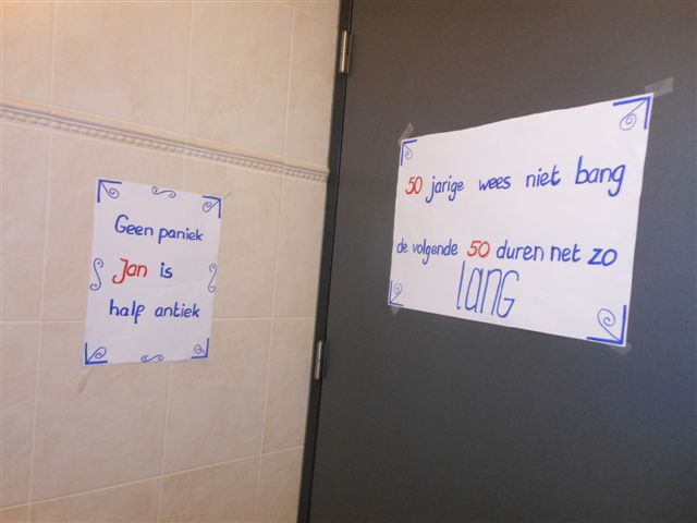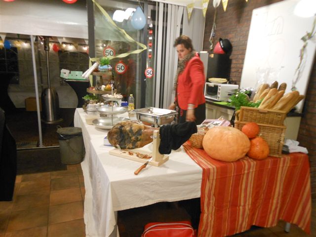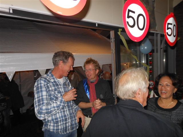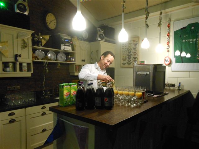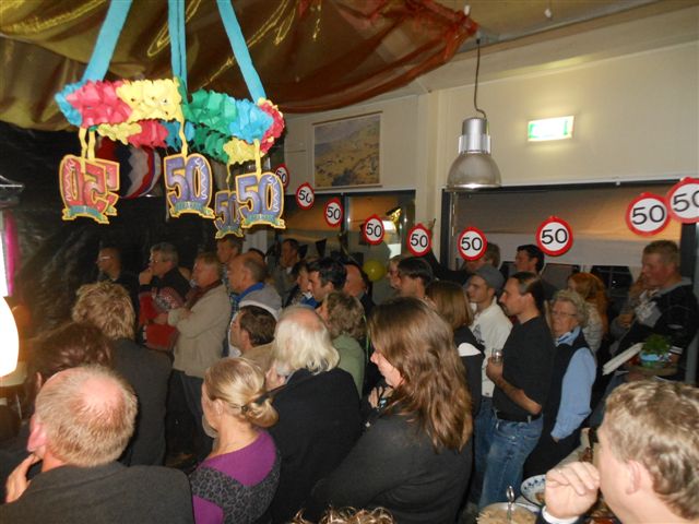 S'middags was Jan Koudenburg niets vermoedend vertrokken uit z’n vertrouwde omgeving en om 8 uur was dit allemaal volop in bedrijf. Z’n fietsclub, naaste familie en alle personeelsleden waren van de partij en het feest duurde tot in de late uurtjes. Het was een prachtige memorabele avond vol met hoogtepunten waar we met plezier op terug kunnen kijken. Heel mooi was de speech van Jan Koudenburg toen hij vertelde zeer, zeer verrast te zijn met deze avond. En ook vertelde dat hij heel veel gezichten op deze avond zag die hij zelf niet had uitgenodigd maar daar en tegen ook heel veel gezichten miste… daar kun je het dan op zo’n avond wel weer mee doen…. Maar gek genoeg wisten we dat eigenlijk van te voren wel…..