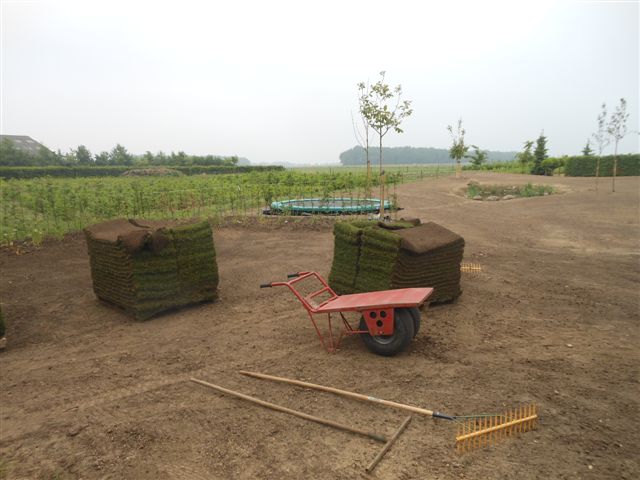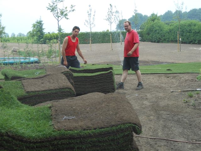 Onze mannen zijn volop bezig met de aanleg van verschillende tuinen… ongelooflijk wat we weer allemaal mogen doen…. Grote tegels van een meter bij een meter met een kraan gelegd… Prachtige strakke vijvers met natuurstenen randen… Mooie dingen om te doen en vooral om te mogen doen. Vele meters gras en grote stukken groen tapijt…