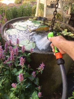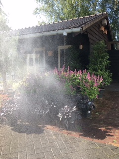 Voor ons bedrijf hebben we op onze kwekerij dag in dag uit de kwekerij besproeid. De sproeiers zijn op plekken geweest waar ze nog nooit zijn geweest. Sinds we een bron hebben, in 1990 geslagen 80 meter diep, nog nooit zo intensief gebruikt. Normaal wordt hij iedere dag aangesproken in de zomermaanden en in voorjaar in de vroege nachtvorst gevaarlijke periode. Maar nu waren er dagen dat hij dagelijks bleef lopen. Er werd zelfs uit ons waterbassin water gezogen met giertanks. Om op plekken elders in onze gemeente en er buiten pas aangeplante stukken water te geven. Ook op andere percelen van ons waar geen waterbron is extra water te geven. Ook hier om duizenden pas ingeplante planten te redden. En te zorgen dat ze de droge zomer overleven.